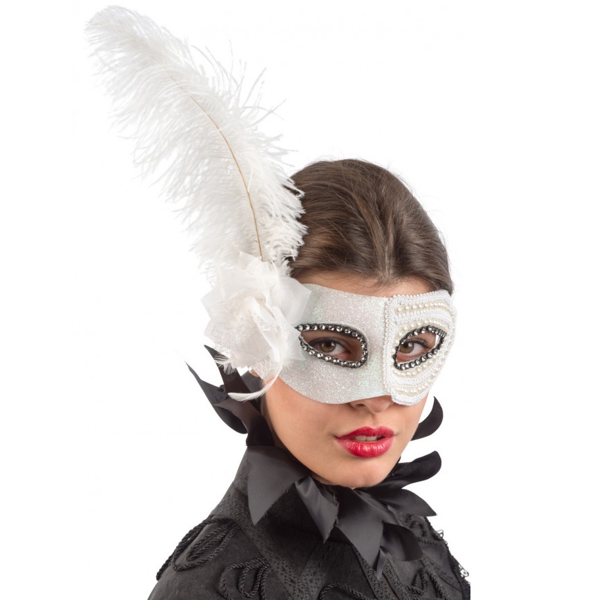 Αποκριάτικη Μάσκα με Φτερό και Λουλούδι